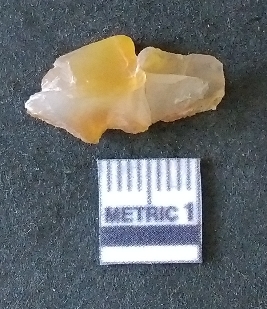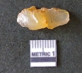 | Description / विवरण | The chalcedony flake is pale yellow in color. Translucent in appurtenance. The piece is shows sharp pointed ends and flake scars on the surface. As a result of flaking. |