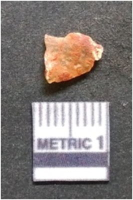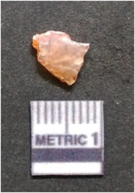 | Description / विवरण | It is chalcedony flake, translucent in appearance. The piece shows sharp pointed ends and flake scars on the surface as a result of flaking. The piece shows a bulb of percussion. |