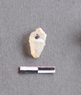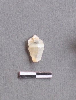 | Description / विवरण | Quartz with a small fragment of cortex with calcium deposition bulb of percussion along with a flaked rib on the other side. |