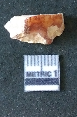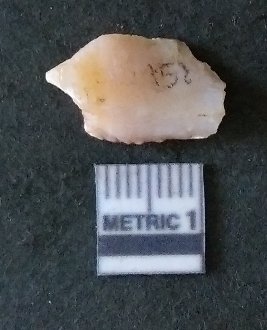 | Description / विवरण | The quartz fragment shows prominent flaks scars and sharp flaked ends as a result of flaking. The piece is translucent white and shows cryptocrystalline matrix. |