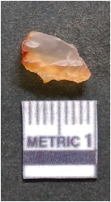 | Description / विवरण | It is chalcedony flake, translucent in appearance. The piece shows sharp pointed ends and flake scars on the surface as a result of flaking. The piece shows a bulb of percussion. |
