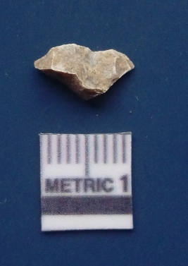 | Description / विवरण | The chert piece is dark in color, with a prominent bulb of percussion and sharp flaked edges. The piece is a part of lithic debitage or raw material for lithic knapping. The piece shows clear ripple marks and bulb of percussion. |