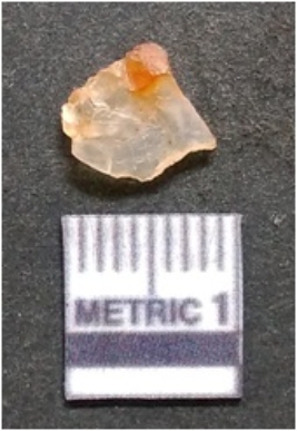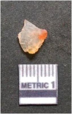 | Description / विवरण | It is chalcedony flake, translucent in appearance. The piece shows sharp pointed ends and flake scars on the surface as a result of flaking. The piece shows a bulb of percussion. |