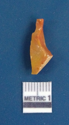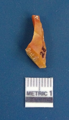 | Description / विवरण | The chert piece is dark in color, with a prominent bulb of percussion and sharp flaked edges. The piece is a part of lithic debitage or raw material for lithic knapping. The piece shows clear ripple marks and bulb of percussion. |