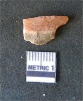 | Description / विवरण | The banded agate piece is crystalline in nature, with a smooth fracture pattern and visible bands on the flaked sides. The piece is pale in color and has sharp flaked ends. |