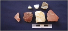 | Description / विवरण | Flakes and Chunks on chert, chalcedony and banded agate, byproduct of tool manufacturing, a few have prepared platform, diffused bulb on ventral side. |