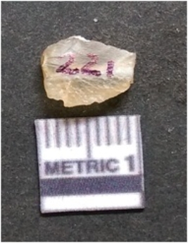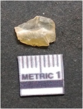 | Description / विवरण | It is chalcedony flake, translucent in appearance. The piece shows sharp pointed ends and flake scars on the surface as a result of flaking. The piece shows a bulb of percussion. |