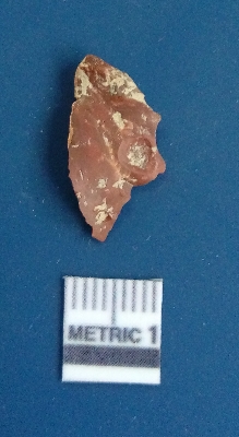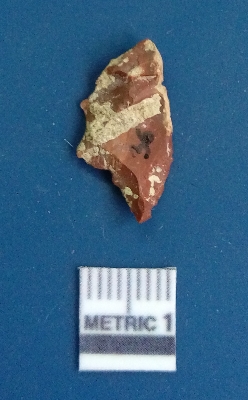 | Description / विवरण | The chert piece is dark in color, with a prominent bulb of percussion and sharp flaked edges. The piece is a part of lithic debitage or raw material for lithic knapping. The piece shows clear ripple marks and bulb of percussion. |
