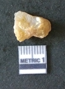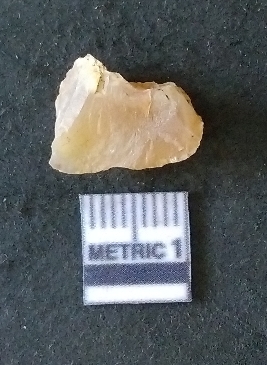 | Description / विवरण | The chalcedony flake is pale yellow in color. Translucent in appurtenance. The piece is shows sharp pointed ends and flake scars on the surface. As a result of flaking. |