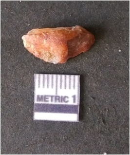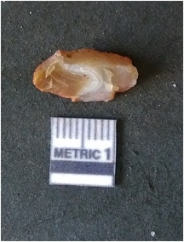 | Description / विवरण | It is chalcedony flake, translucent in appearance. The piece shows sharp pointed ends and flake scars on the surface as a result of flaking. The piece shows a bulb of percussion. |