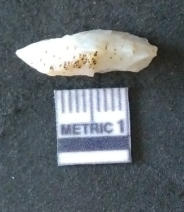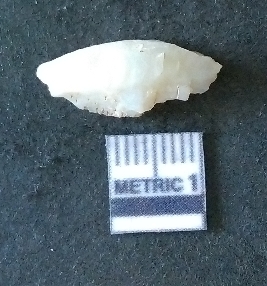 | Description / विवरण | The quartz fragment shows prominent flaks scars and sharp flaked ends as a result of flaking. The piece is translucent white and shows cryptocrystalline matrix. |