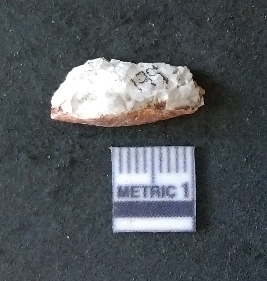 | Description / विवरण | The quartz fragment shows prominent flaks scars and sharp flaked ends as a result of flaking. The piece is translucent white and shows cryptocrystalline matrix. |