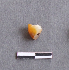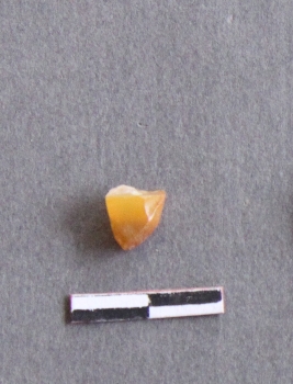 | Description / विवरण | It is a chalcedony flake, with a bulb of percussion on the ventral side. |