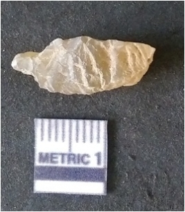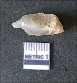 | Description / विवरण | It is chalcedony flake, translucent in appearance. The piece shows sharp pointed ends and flake scars on the surface as a result of flaking. The piece shows a bulb of percussion. |