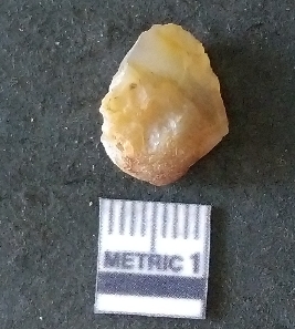 | Description / विवरण | The chalcedony flake is pale yellow in color. Translucent in appurtenance. The piece is shows sharp pointed ends and flake scars on the surface. As a result of flaking. |