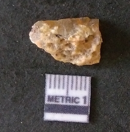 | Description / विवरण | The quartz fragment shows prominent flaks scars and sharp flaked ends as a result of flaking. The piece is translucent white and shows cryptocrystalline matrix. |