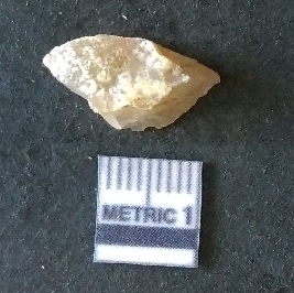 | Description / विवरण | The quartz fragment shows prominent flaks scars and sharp flaked ends as a result of flaking. The piece is translucent white and shows cryptocrystalline matrix. |