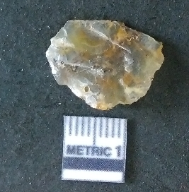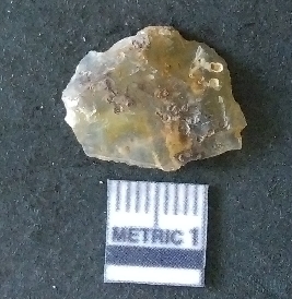 | Description / विवरण | The quartz fragment shows prominent flaks scars and sharp flaked ends as a result of flaking. The piece is translucent white and shows cryptocrystalline matrix. |