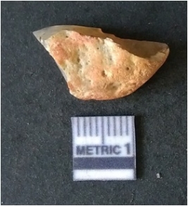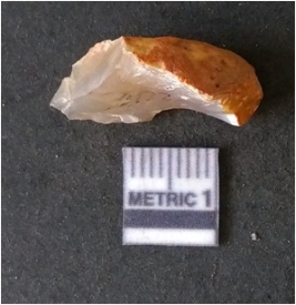 | Description / विवरण | It is chalcedony flake, translucent in appearance. The piece shows sharp pointed ends and flake scars on the surface as a result of flaking. The piece shows a bulb of percussion. |