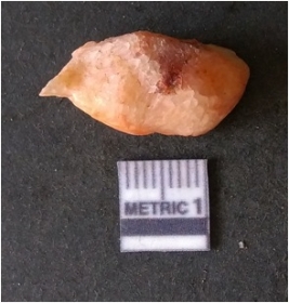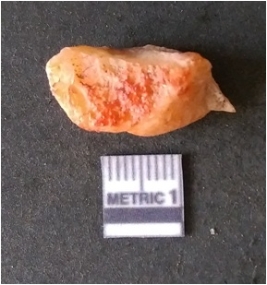 | Description / विवरण | It is chalcedony flake, translucent in appearance. The piece shows sharp pointed ends and flake scars on the surface as a result of flaking. The piece shows a bulb of percussion. |
