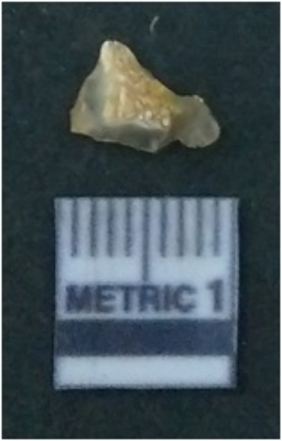 | Description / विवरण | It is chalcedony flake, translucent in appearance. The piece shows sharp pointed ends and flake scars on the surface as a result of flaking. The piece shows a bulb of percussion. |