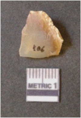 | Description / विवरण | It is chalcedony flake, translucent in appearance. The piece shows sharp pointed ends and flake scars on the surface as a result of flaking. The piece shows a bulb of percussion. |