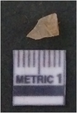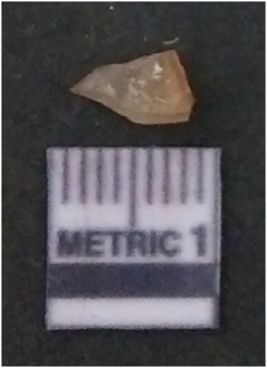 | Description / विवरण | It is chalcedony flake, translucent in appearance. The piece shows sharp pointed ends and flake scars on the surface as a result of flaking. The piece shows a bulb of percussion. |