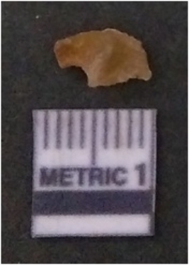 | Description / विवरण | It is chalcedony flake, translucent in appearance. The piece shows sharp pointed ends and flake scars on the surface as a result of flaking. The piece shows a bulb of percussion. |