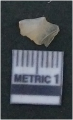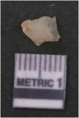 | Description / विवरण | It is chalcedony flake, translucent in appearance. The piece shows sharp pointed ends and flake scars on the surface as a result of flaking. The piece shows a bulb of percussion. |