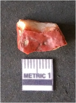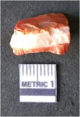 | Description / विवरण | The banded agate piece is crystalline in nature, with a smooth fracture pattern and visible bands on the flaked sides. The piece is pale in color and has sharp flaked ends. |