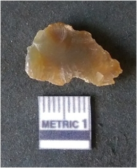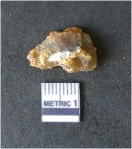 | Description / विवरण | The jasper fragment has sharp flaked edges and a bulb of percussion. The piece is dark in color and has crypto crystalline matrix. Flake scars are visible on the surface and bulb of percussion is present as a result of lithic knapping activity. |