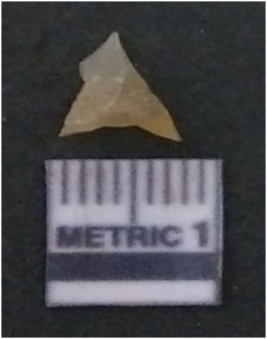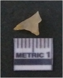| Description / विवरण | It is chalcedony flake, translucent in appearance. The piece shows sharp pointed ends and flake scars on the surface as a result of flaking. The piece shows a bulb of percussion. |