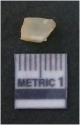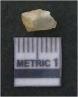 | Description / विवरण | It is chalcedony flake, translucent in appearance. The piece shows sharp pointed ends and flake scars on the surface as a result of flaking. The piece shows a bulb of percussion. |