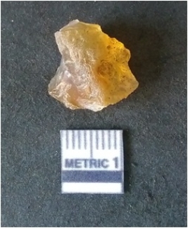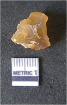 | Description / विवरण | It is chalcedony flake, translucent in appearance. The piece shows sharp pointed ends and flake scars on the surface as a result of flaking. The piece shows a bulb of percussion. |