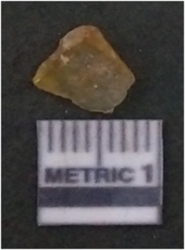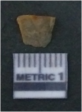 | Description / विवरण | It is chalcedony flake, translucent in appearance. The piece shows sharp pointed ends and flake scars on the surface as a result of flaking. The piece shows a bulb of percussion. |