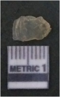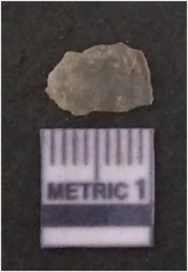 | Description / विवरण | It is chalcedony flake, translucent in appearance. The piece shows sharp pointed ends and flake scars on the surface as a result of flaking. The piece shows a bulb of percussion. |