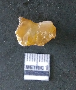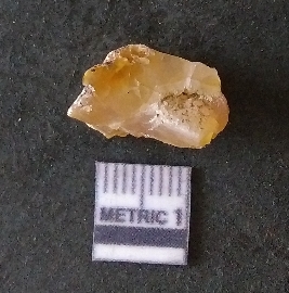 | Description / विवरण | The chalcedony flake is pale yellow in color. Translucent in appurtenance. The piece is shows sharp pointed ends and flake scars on the surface. As a result of flaking. |