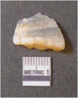 | Description / विवरण | The agate piece is translucent in appurtenance, with angular flaked edges and a bulb of percussion. The piece shows flake scars on the surface. |