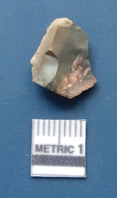 | Description / विवरण | It is a blade fragment. The ridges and flake scars are clearly seen on the dorsal surface while the ventral surface is plain. The lateral sides are sharp and it is brownish in colour. |