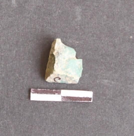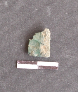 | Description / विवरण | Chert stone, flaked, green in color, opaque. |