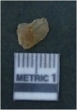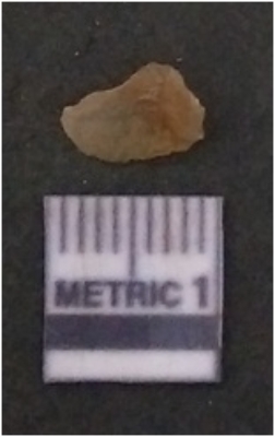 | Description / विवरण | It is chalcedony flake, translucent in appearance. The piece shows sharp pointed ends and flake scars on the surface as a result of flaking. The piece shows a bulb of percussion. |