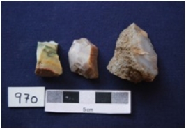 | Description / विवरण | Flakes, made on chert and agate, byproduct of tool manufacturing, two flakes with prepared platform, prominent bulb on ventral side. |