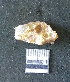 | Description / विवरण | The chalcedony flake is pale yellow in color. Translucent in appurtenance. The piece is shows sharp pointed ends and flake scars on the surface. As a result of flaking. |