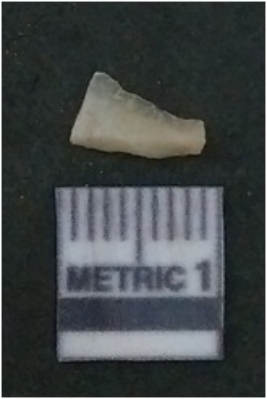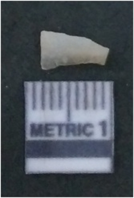 | Description / विवरण | It is chalcedony flake, translucent in appearance. The piece shows sharp pointed ends and flake scars on the surface as a result of flaking. The piece shows a bulb of percussion. |