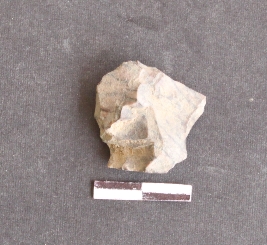 | Description / विवरण | Banded chert stone, with grayish bands bulb of percussion seen. Surface is filled with flaked ridges. |