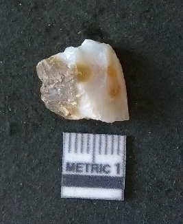 | Description / विवरण | The quartz fragment shows prominent flaks scars and sharp flaked ends as a result of flaking. The piece is translucent white and shows cryptocrystalline matrix. |