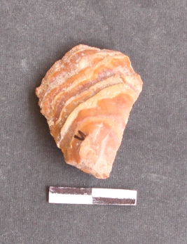 | Description / विवरण | Banded chert, with bulb of percussion seen on one surface cortex covered on the other. |