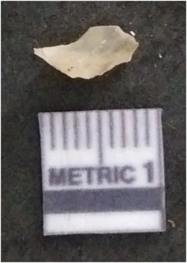 | Description / विवरण | It is chalcedony flake, translucent in appearance. The piece shows sharp pointed ends and flake scars on the surface as a result of flaking. The piece shows a bulb of percussion. |