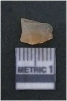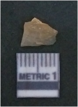 | Description / विवरण | It is chalcedony flake, translucent in appearance. The piece shows sharp pointed ends and flake scars on the surface as a result of flaking. The piece shows a bulb of percussion. |
