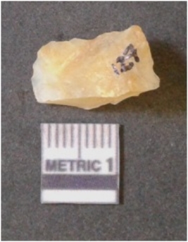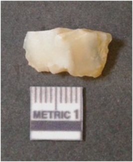 | Description / विवरण | It is chalcedony flake, translucent in appearance. The piece shows sharp pointed ends and flake scars on the surface as a result of flaking. The piece shows a bulb of percussion. |